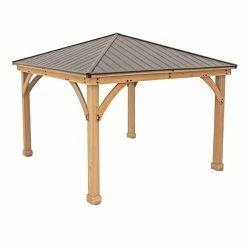 Expand your outdoor living space with the Yardistry Meridian Gazebo. Decorate the roomy interior of your gazebo with patio furniture and accessories and you’ll be entertaining guests under a mocha-brown aluminum roof all season long. With a classic design in elegant arching gussets and sturdy plinths, this gazebo will make your backyard the new favorite hangout for family and friends. Illustrated step-by-step instructions and helpful-hints videos will guide you through every step of the installation process.