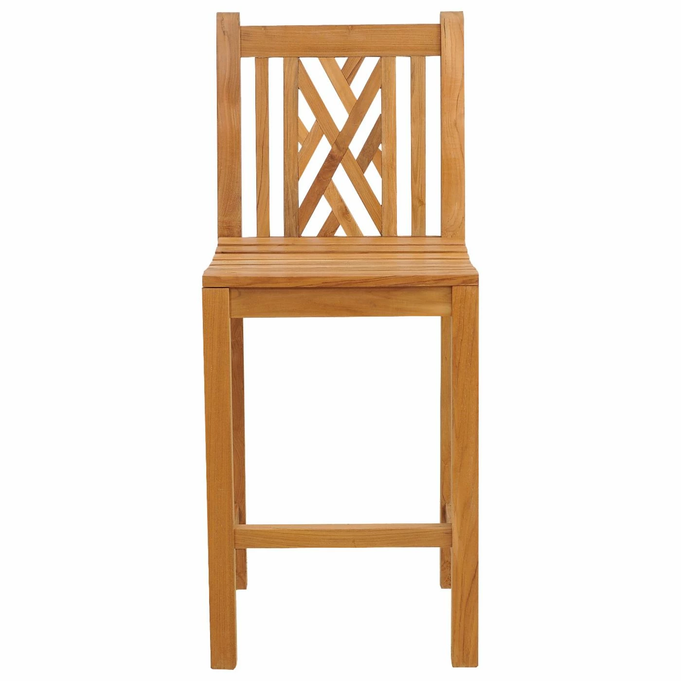 Folks can’t get enough of our popular Chic Teak Chippendale 30 in. Indoor/Outdoor Armless Barstool. This A-grade teak wood outdoor bar chair with arms has a striking design that’s sure to make it stand out. The rich honey brown colors and tight wood grain in this solid wood barstool are what you’ve come to expect from our premium brand. Durable construction meets gorgeous design in this barstool made to withstand the elements for years to come. Optional weather resistant and washable cushion also available. All of the pieces in the Chippendale collection are based on a design of famed 18th century furniture maker and master craftsman Thomas Chippendale, displaying the unique neoclassical influence and ornate woodcarving for which his work has been so historically renowned. This bar chair expresses both the delicacy of Chippendale’s design and the elegance of teak wood in one beautiful piece of furniture.