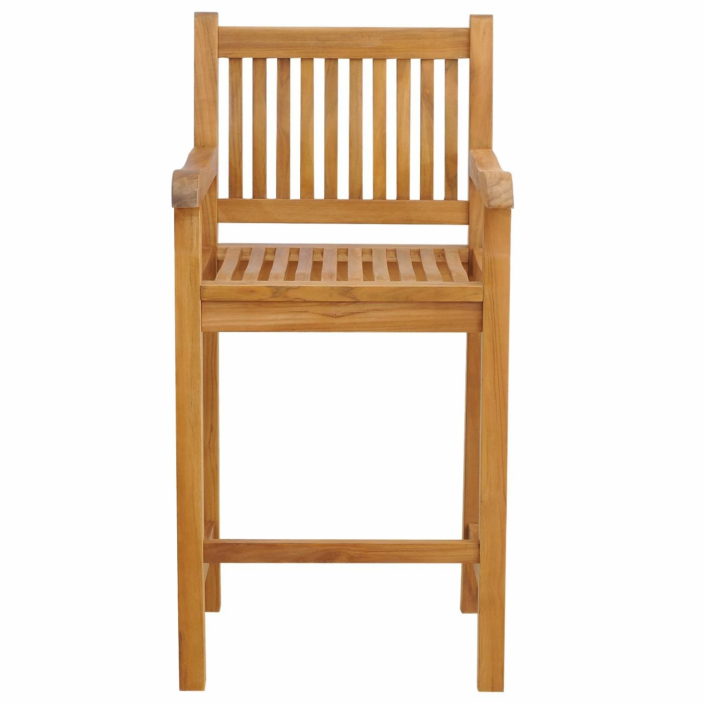 The Chic Teak Elzas 30 in. Indoor/Outdoor Barstool with Arms, one of the newer additions to our Elzas Collection, is fashioned from solid A grade teak wood and premium stainless steel hardware. This classic design brings simple sophistication to the unmatched quality and splendor of teak wood. The Elzas Collection’s uncomplicated design makes it a welcome addition to any setting, bringing all the comforts of home outdoors. The curved back design of this teak chair makes it exceedingly comfortable with or without a cushion. You’ll love the stunning honey-brown wood grains found in our teak wood. The design of this barstool chair combined with the natural beauty of the wood make it one of our most distinctive designs, combining high style with high comfort. This handcrafted teak bar chair enhances any table or room it adorns.