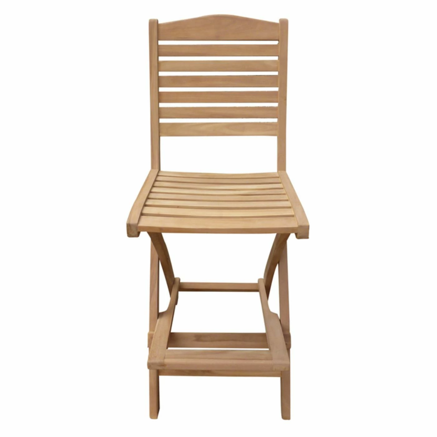 Add comfortable seating to your outdoor space with the Seven Seas Teak Slat Back Folding Bar Stool with Footrest. This bar stool is constructed out of durable teak and has a natural finish for timeless, effortless charm. It’s weather-resistant, making it ideal for outdoor use. It has a footrest for extra comfort. This stool can be folded up for easy storage.