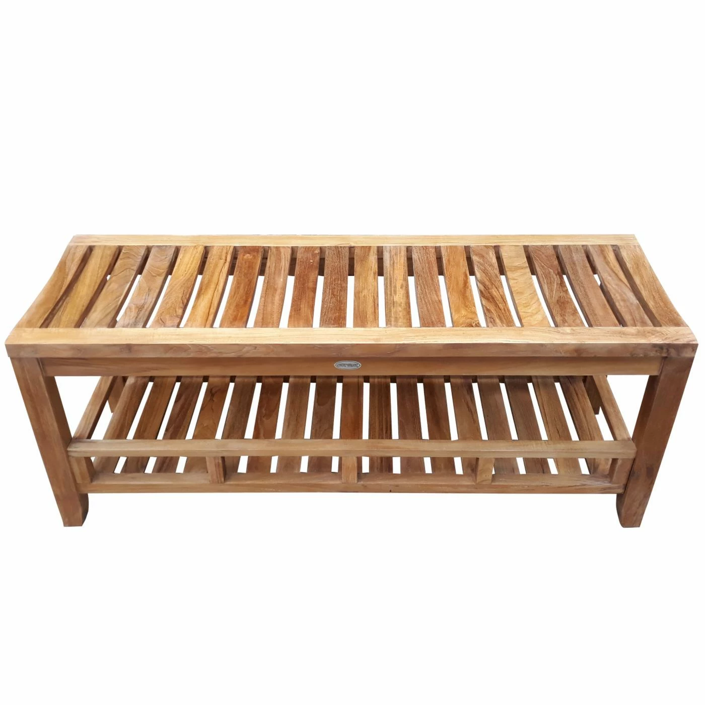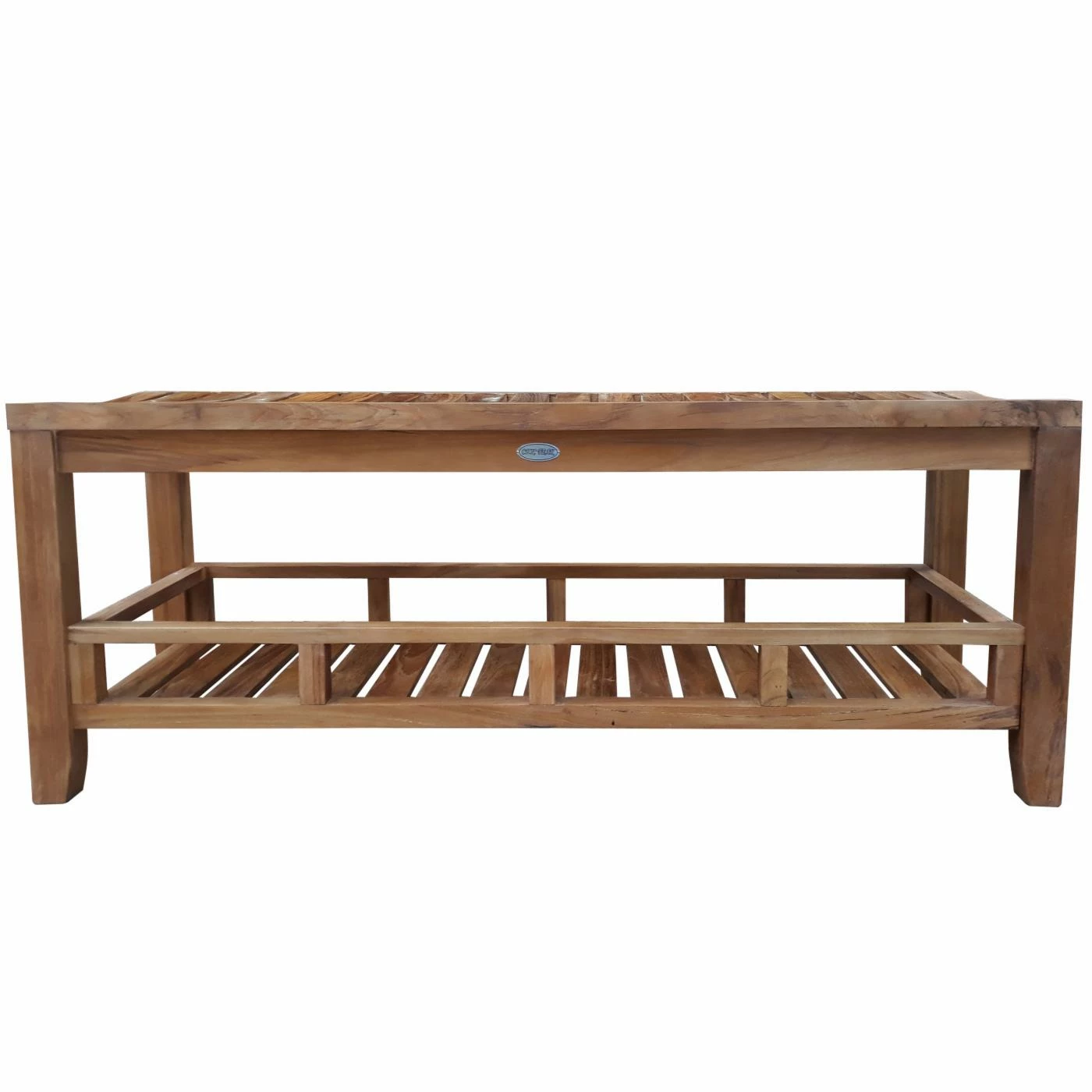 Constructed of Grade A teak wood, this bench is in a hand-rubbed wax finish that highlights the natural beauty of the wood. An open shelf is the perfect place to store towels or toiletries. Stainless steel hardware adds to the piece’s durable construction.