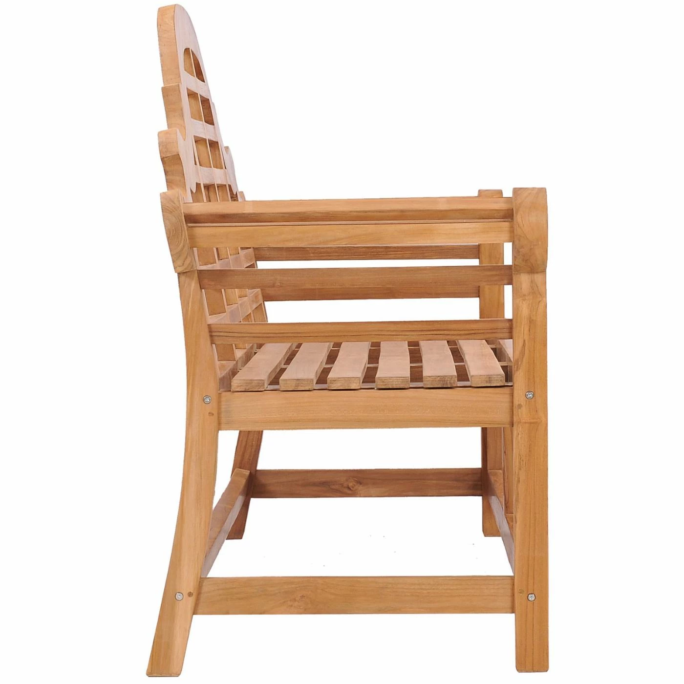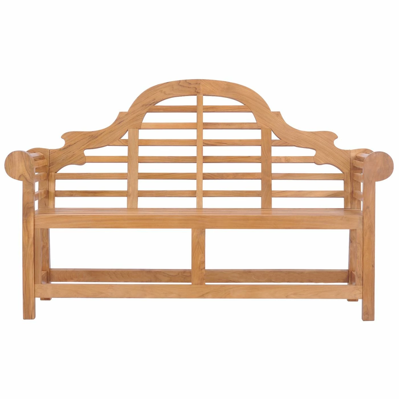 Named for the 20th-century British architect whose work inspired it, the Chic Teak Lutyens Teak Outdoor Bench adds a modern touch to the garden, pool deck, or patio. Sold in your choice of available sizes, this bench features a dramatic arched backrest with wave trim and sleek, horizontal slats. Curved arms complement the flowing lines of the back, and the piece has a golden Honeytone finish that brings warmth to outdoor living spaces. Crafted out of solid, A-grade teak wood and stainless steel hardware, the bench is as sturdy and resistant to weather damage as it is chic.