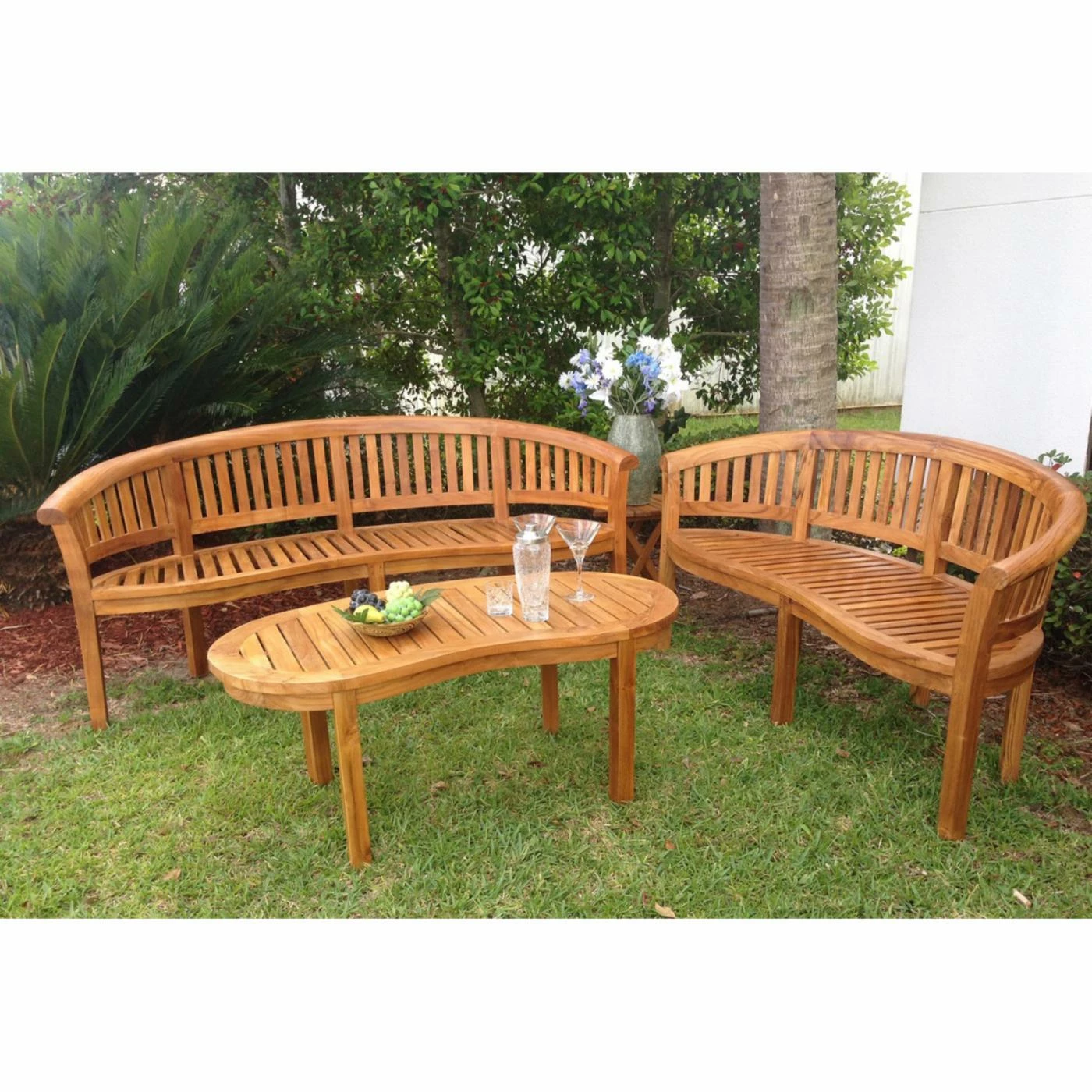 Take in the view of your garden or pool in absolute comfort as you sit on the Chic Teak Peanut Teak Outdoor Bench. Masterfully crafted out of weather- and pest-resistant, solid, A-grade teak wood, this bench will stand the test of time and weather. It features a curved, sloped back that invites you to sit back and relax. Slats along the back and concave curved seat add visual appeal to the piece. Finished in light Honeytone, this bench will blend in seamlessly with your outdoor living space, and it comes in your choice of available sizes. The bench is assembled by the manufacturer for your convenience.