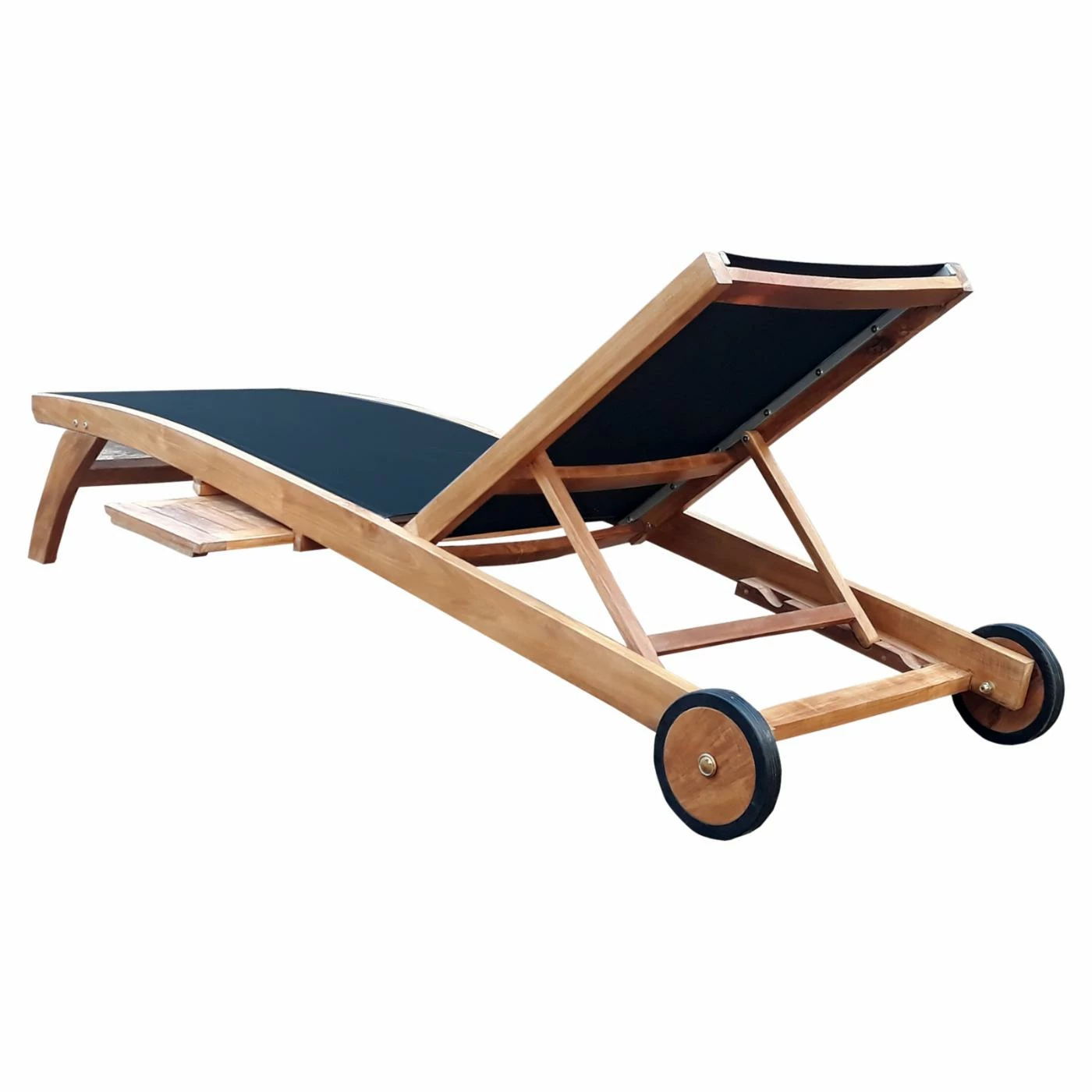 Enjoy a relaxing day by the pool thanks to the Chic Teak Bahama Teak Pool Lounger. This handmade lounger is constructed of premium, Grade A teak wood in a rich honey brown finish. The sling seat is made of black mesh Batyline fabric, giving the lounger a sleek, minimalistic look. A teak tray can be pulled out from the side of the chair, giving you a convenient spot to place your drink, snacks, or book.