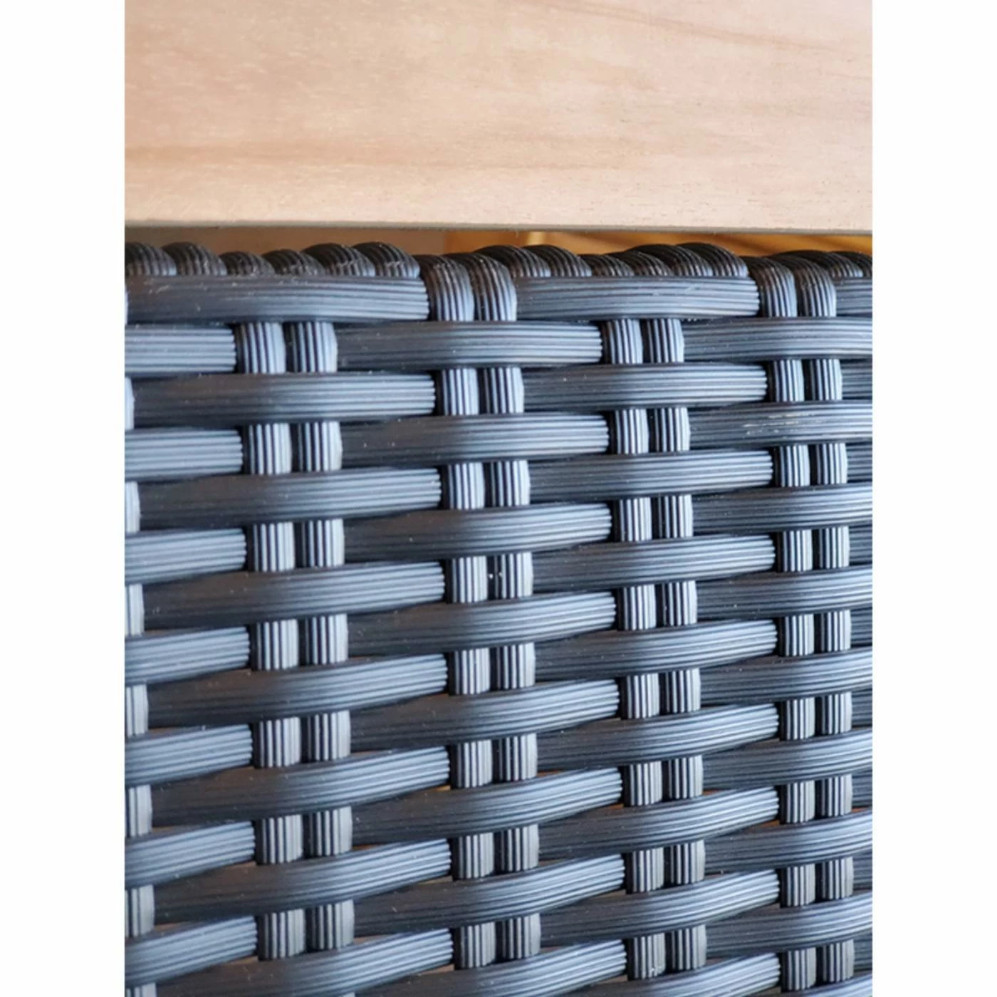 - Hand-woven, all-weather synthetic wicker webbing in black