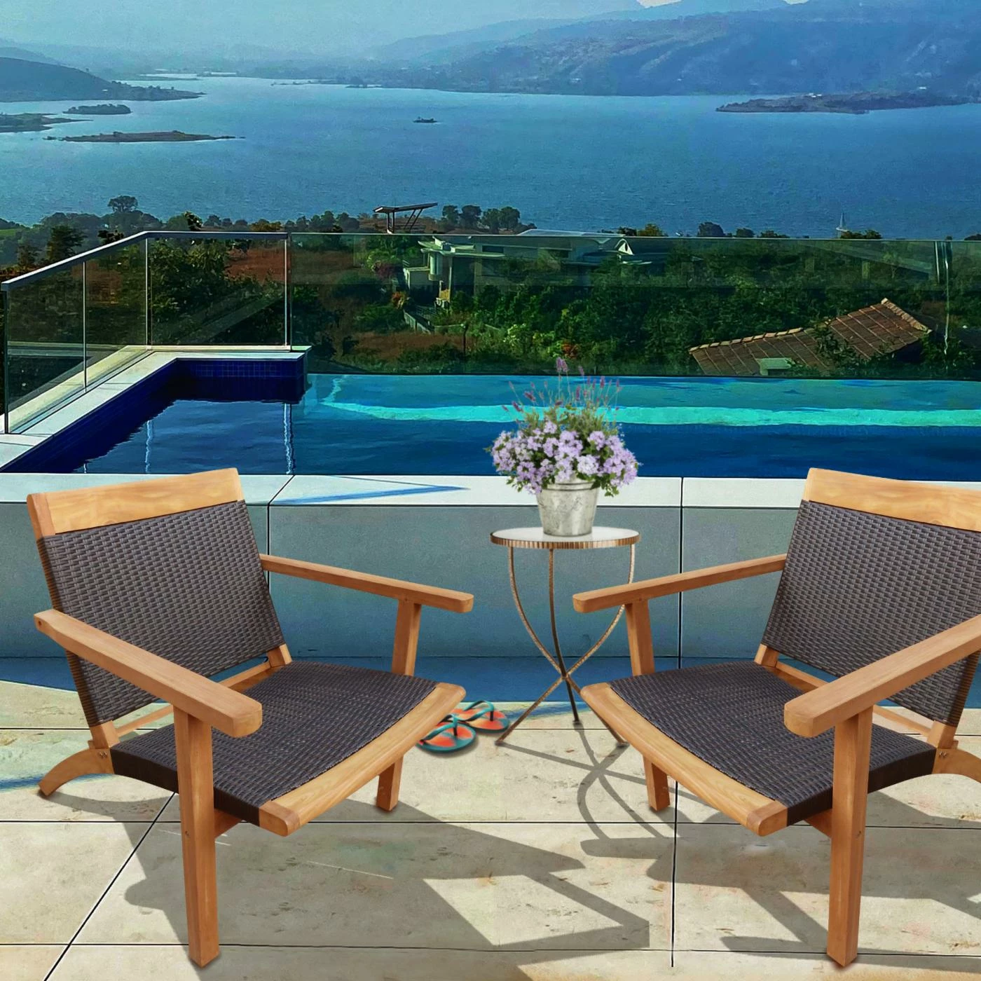 Instantly elevate the style of your home with the Chic Teak Paris Patio Lounge Chair. Handcrafted from eco-friendly, weather-resistant, A-grade teakwood with a hand-rubbed wax finish to accent the richness of the wood grain, this chair is a gorgeous addition to any patio or dining room. Hand-woven, all-weather synthetic wicker in black creates a comfortable seat while also giving this piece a decidedly modern flair. Able to be used indoors or out, you can pull this chair up to a table for eating or use it to relax around the pool with a cold drink and book. This chair can be used in commercial and residential settings.