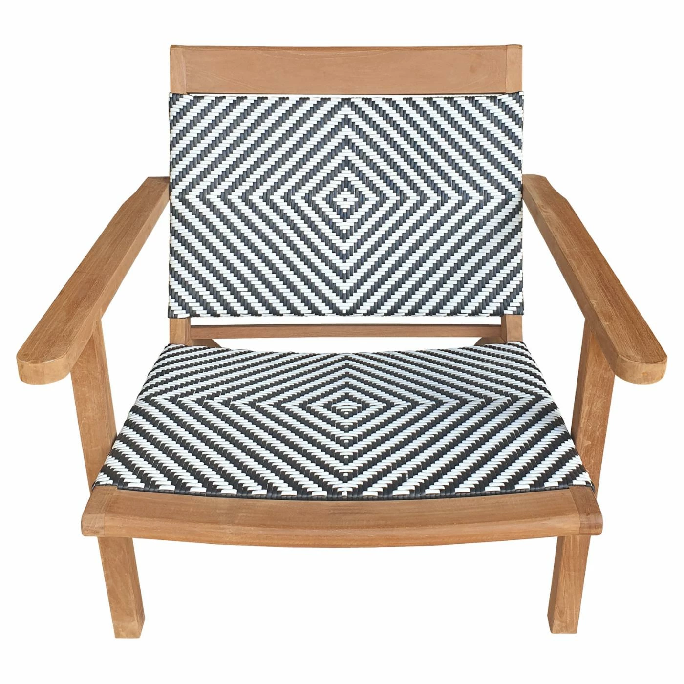 Dine in style with the Chic Teak Paris Teak Patio Lounge. Perfect for indoor or outdoor use, this arm chair is handcrafted from solid, Grade A teak wood. The teak is eco-friendly and sustainably sourced. A rich, honey brown finish contrasts with the webbed wicker seating. Perfect for your deck, patio, pool, or dining room, this chair has an elegant, timeless design that complements a variety of style.