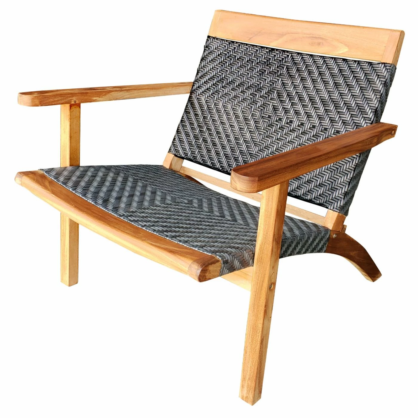 Relax in style thanks to the Chic Teak Teak Wood Barcelona Patio Lounge Chair. This chair can be used indoors or outdoors. Handmade by skilled artisans, the chair frame is constructed of Grade A, sustainably sourced teak wood in a hand-rubbed wax finish. The webbed seat is made of gray, all-weather wicker. With its timeless design and neutral finish, this chair complements a variety of home décor styles. Some simple assembly is required.