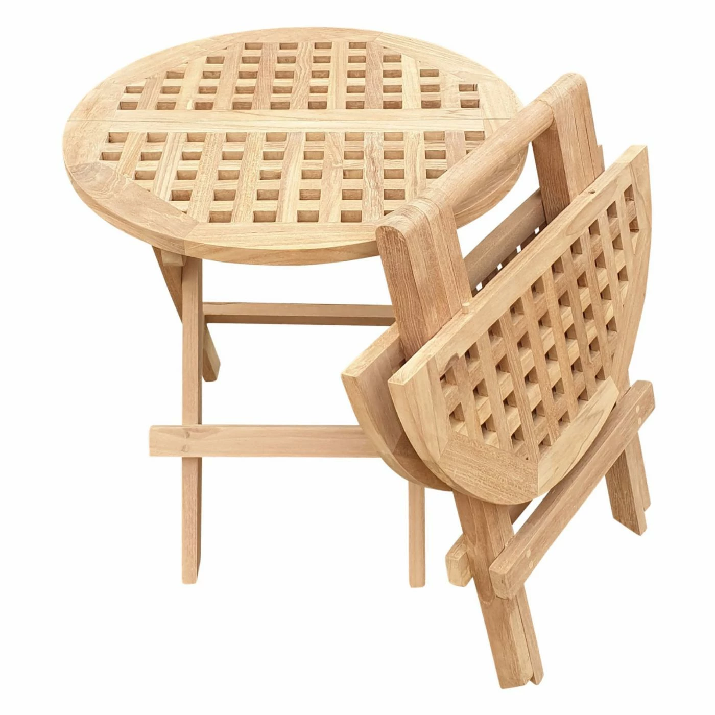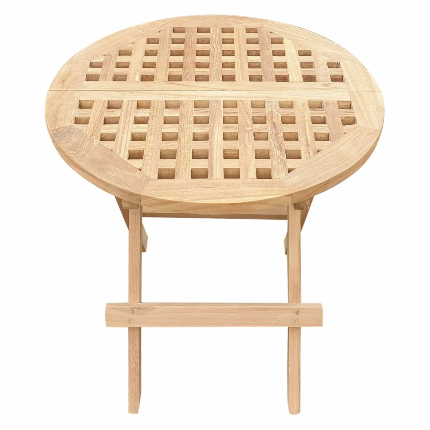The durable and portable Seven Seas Teak Round Folding Patio Side Table folds and unfolds in a flash for an instant accompaniment to your outdoor gathering. Weather-resistant teak sports a warm hue and an eye-catching wood grain sure to impress your guests.