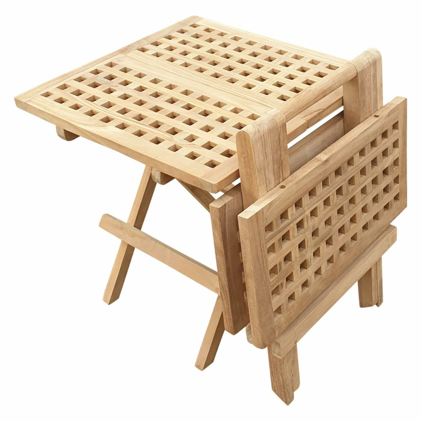 Set out the Seven Seas Teak Square Folding Patio Side Table by your pool or garden for a versatile addition to outdoor dΓ©cor. This portable folding design is weather resistant for long-lasting durability with an elegant look.