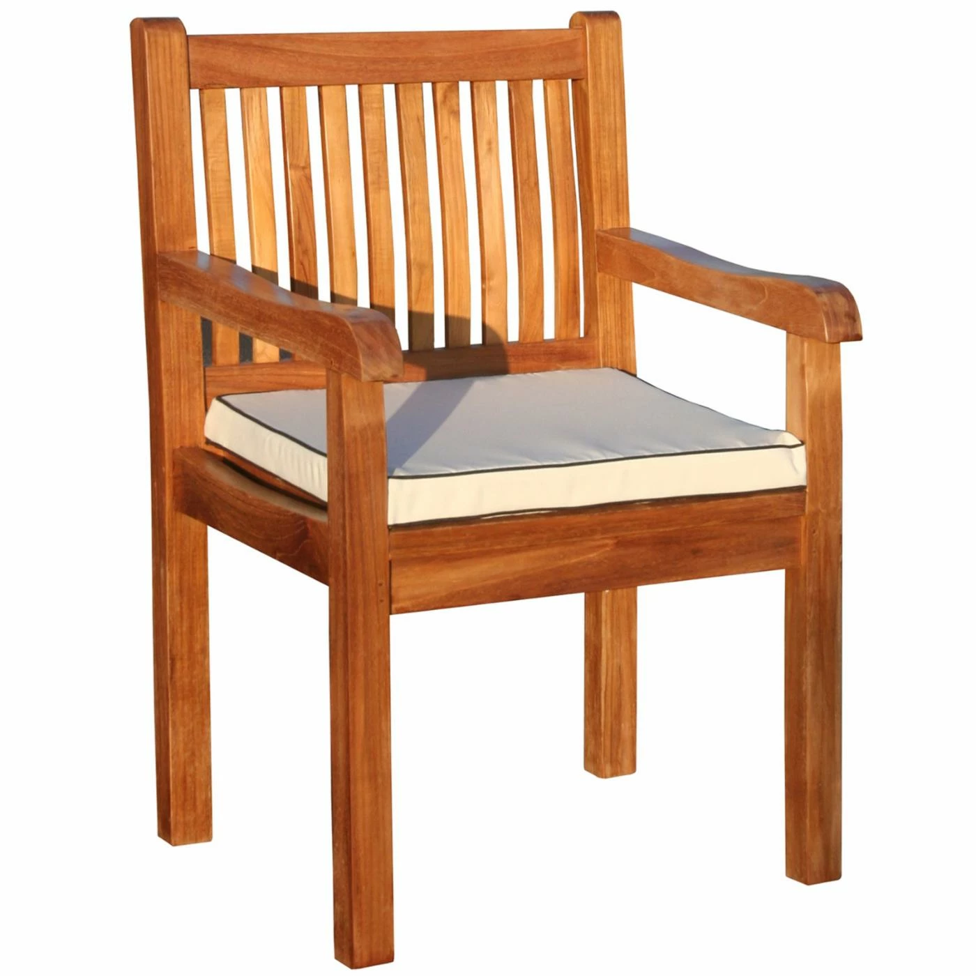 Reflective of traditional European style, the Chic Teak Elzas Teak Patio Dining Arm Chair brings a touch of casual sophistication to outdoor dining areas. The design includes vertical slats on the sides and curved seat, as well as arched arms that provide plenty of elbow support. Fabricated out of solid, A-grade teak wood and stainless steel hardware, this dining chair is highly resistant to the effects of weather and pests. The chair comes with minimal assembly required and finished in a rich golden Honeytone, ready to enjoy in minutes.