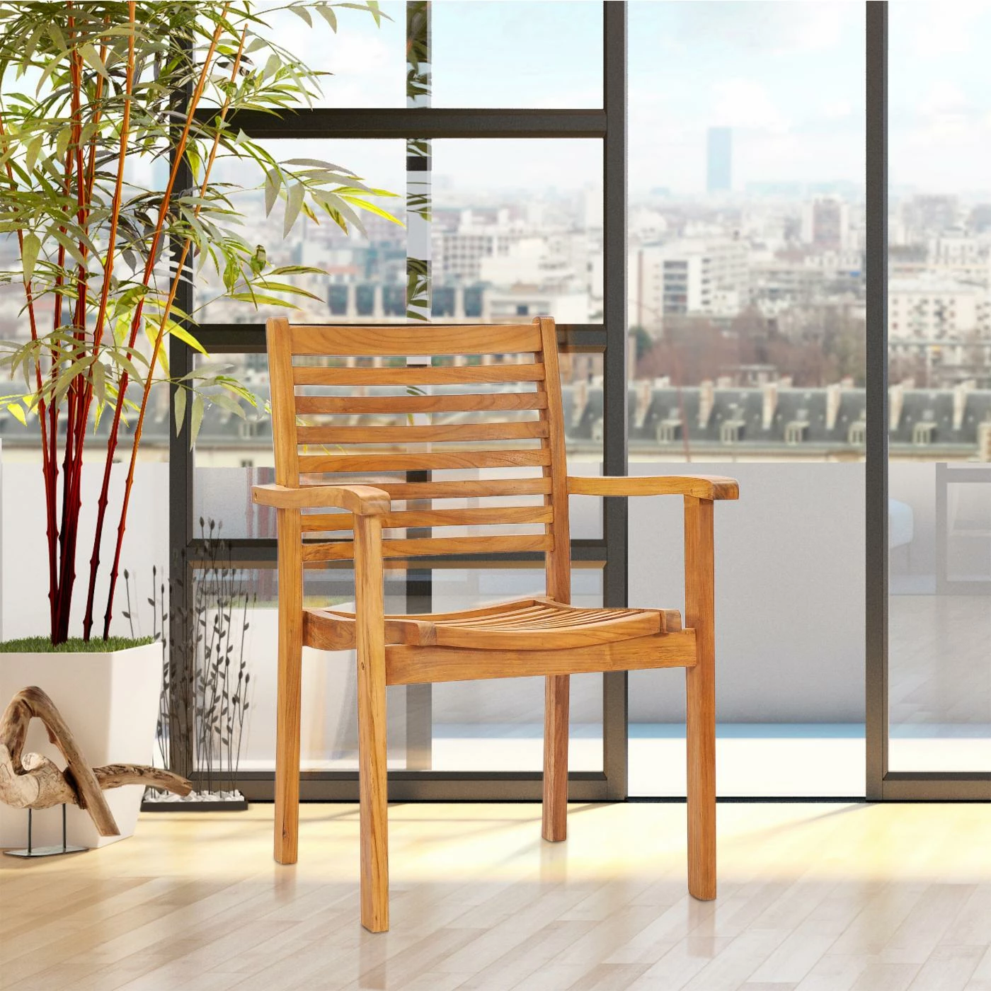 Sleek slats and defined angles give the Chic Teak Italy Teak Stacking Patio Dining Chair an upscale look that will elevate the style of your outdoor dining or seating area. Inspired by Italian design trends, this chair shows off a golden Honeytone finish that lets you enjoy the details of its natural wood grain. Only the finest solid, A-grade teak is used to craft the chair, ensuring durability and strength. This weather-resistant chair can be stacked up to four high for compact storage.