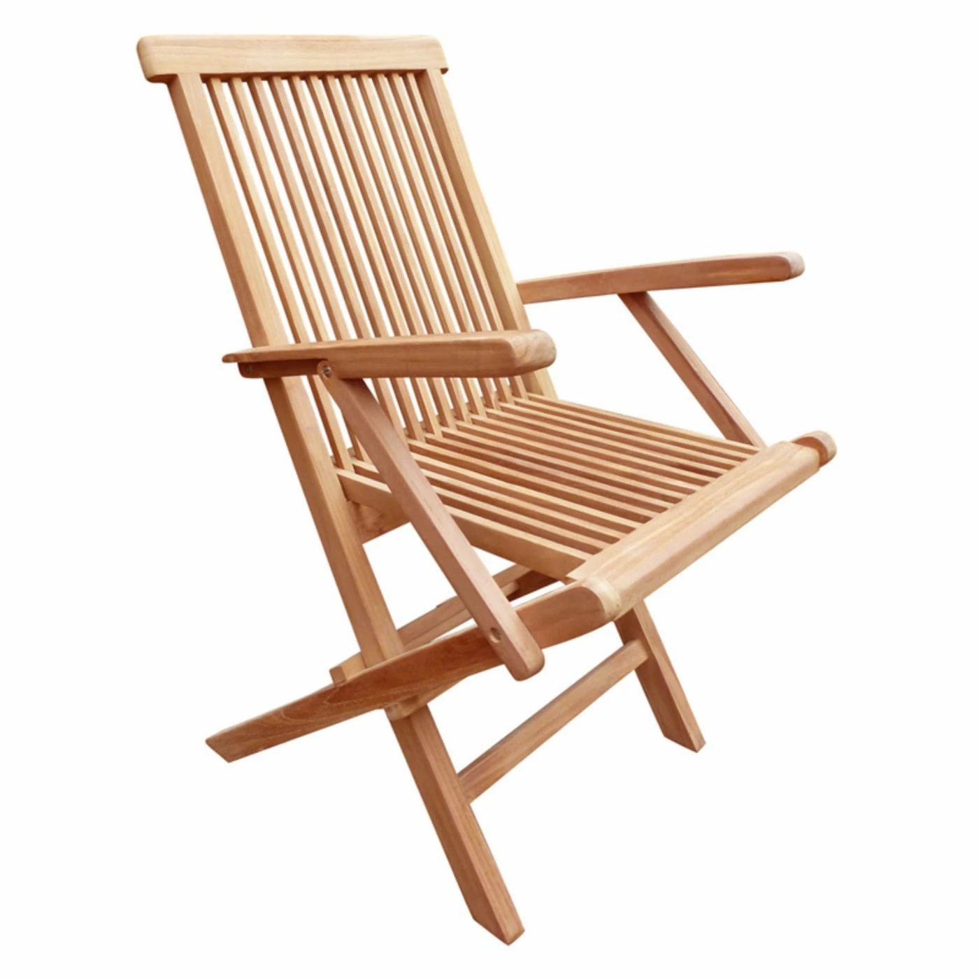 The Seven Seas Teak Folding Patio Arm Chair – Set of 2 will make your patio welcoming and hospitable. These chairs are constructed of durable teak with a natural, sanded finish. They are weather-resistant, making them ideal for outdoor use. They also fold easily for convenient storage. This set includes two chairs.