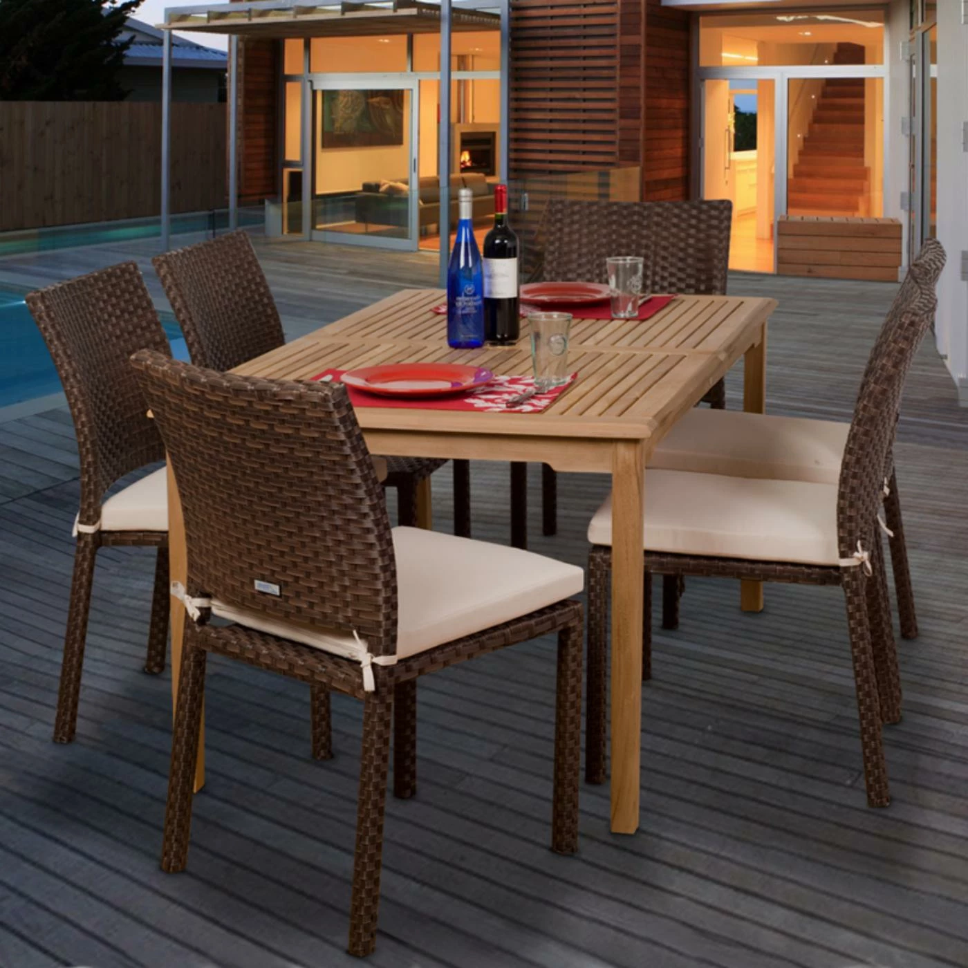 The Amazonia Luxemburg Teak and All Weather Wicker Dining Set – Seats 6 brings European flair to your outdoor patio space. With six stackable side chairs and a spacious rectangular dining table, this set is built to last through all seasons. The table boasts the premium quality of genuine plantation-grown teak, while each chair features a durable aluminum frame with an all-weather wicker exterior coated in resin. The wicker’s dark brown color blends well in any setting.