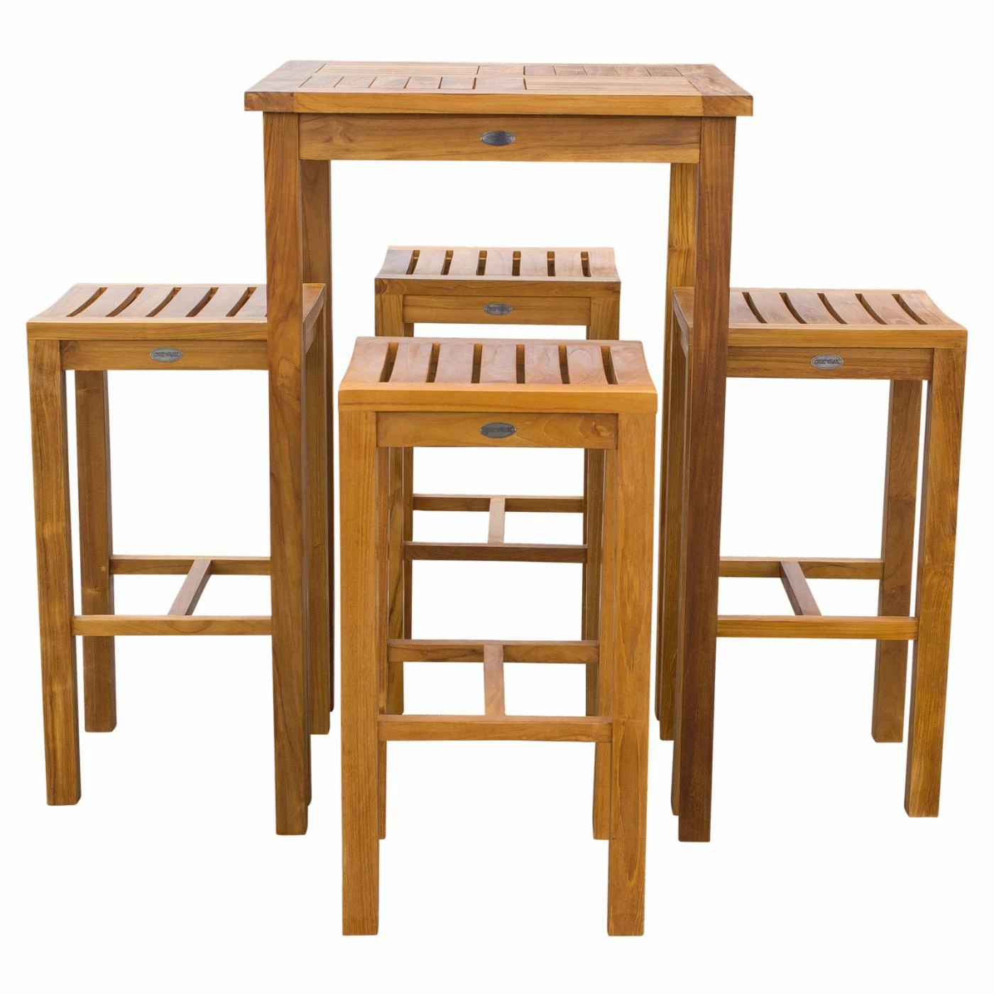Settle back and enjoy the sunrise with the Chic Teak Havana Teak 5 Piece Square Patio Dining Set. This tall, square table comes with four matching backless stools. Solid teak with block legs constructs the frames, assembled with stainless-steel hardware and finished in honey brown. Thick slats provide with set with a casual, rustic appeal. Teak is naturally resistant to all outdoor hazards.