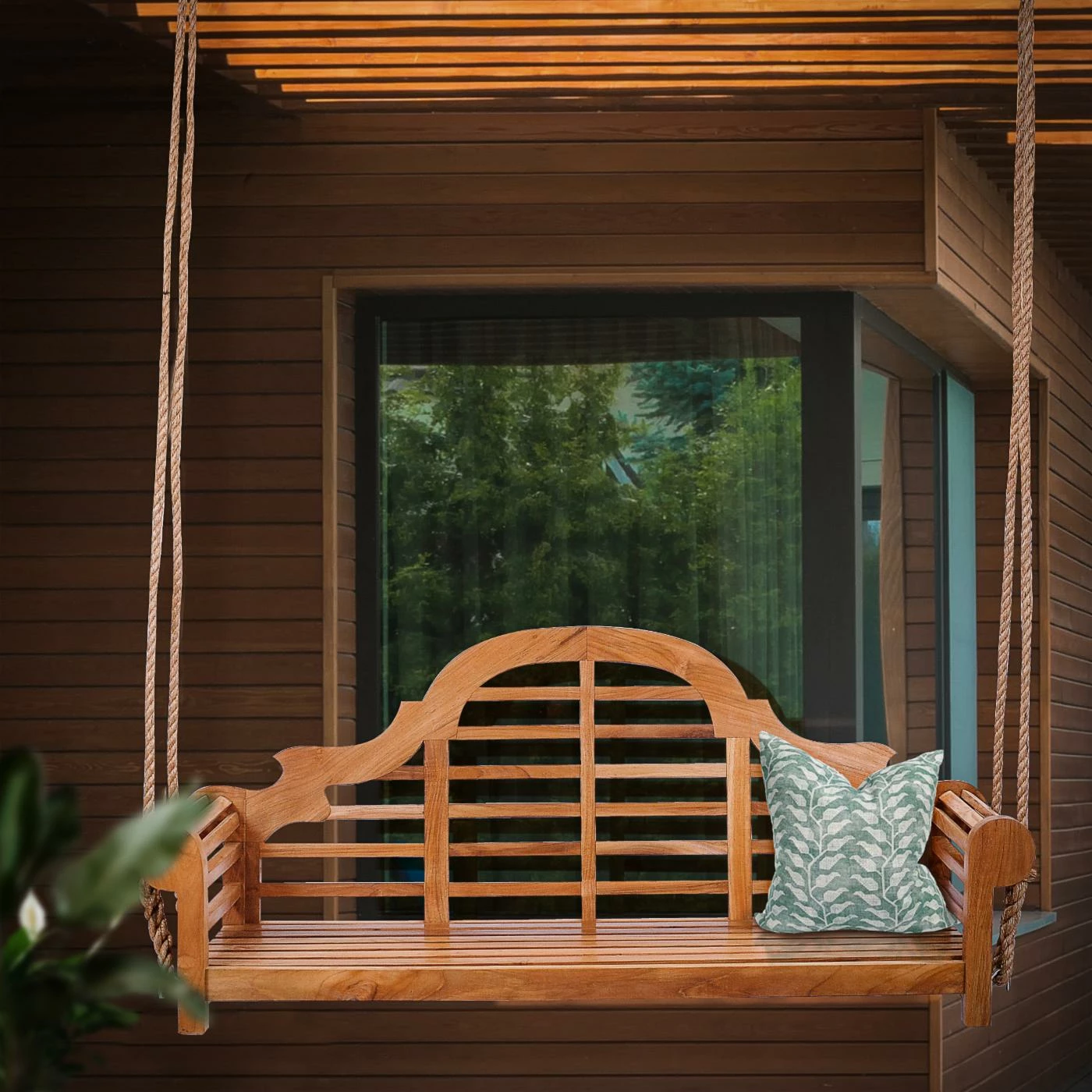 The Chic Teak Lutyens Porchswing adds a country garden feel to your porch, patio, or yard. This elegant swing is constructed out of natural teak wood and is based on a famous design from 20th-century British architect Sir Edwin Lutyens. The intricate woodwork and symmetrical style reflects Lutyenโs classic designs, while the rope suspensions add a sense of whimsy that charms any outdoor space.