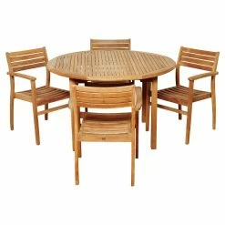 Discount 🤩 Patio Dining Sets Amazonia Gerard Teak 5 Piece Round Patio Dining Set ⌛