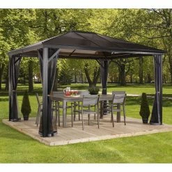 Best deal ⌛ SummerCove Maple 12 Ft. X 14 Ft. Cedar Framed Gazebo With Steel Hardtop Roof – Brown 🎁