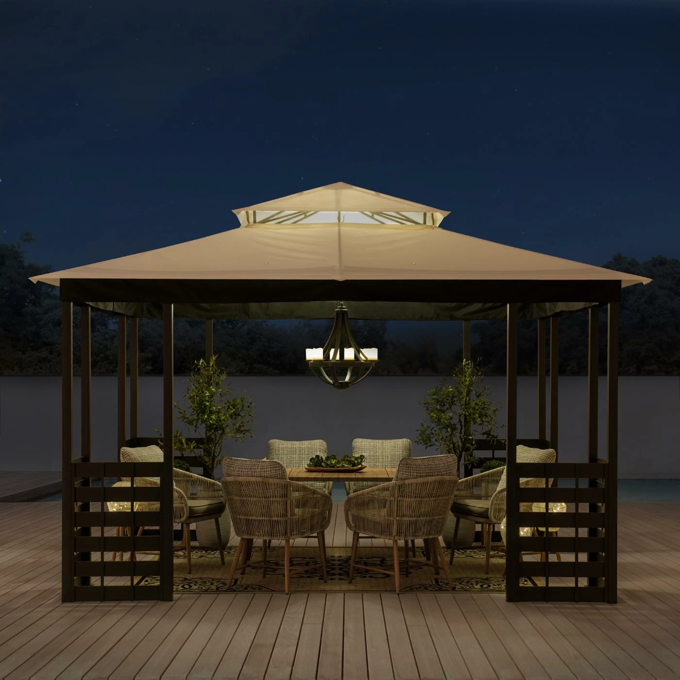 Instantly create an outdoor gathering spot for family and friends away from the glaring sun and pesky insects. This 11 ft. x 13 ft. gazebo by the world’s leading ready-to-assemble outdoor structure maker, Sunjoy, creates a perfect outdoor setting. Keep cool in the shade under the weather-resistant canopy supported by a durable steel frame. With straight-forward, easy-to-follow assembly instructions you’ll be relaxing in your favorite new outdoor living space in no time.
