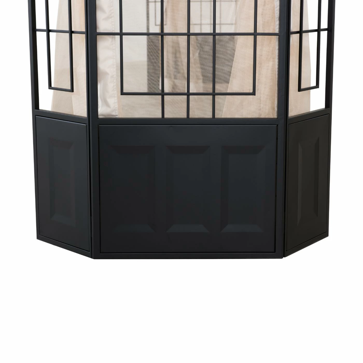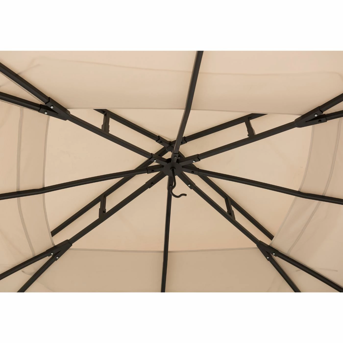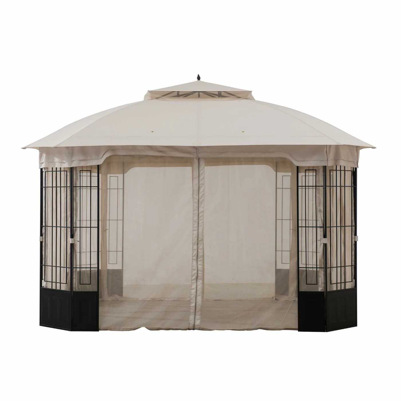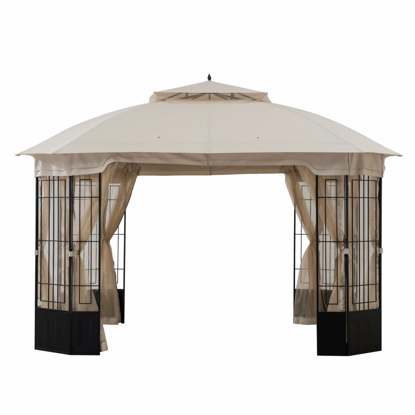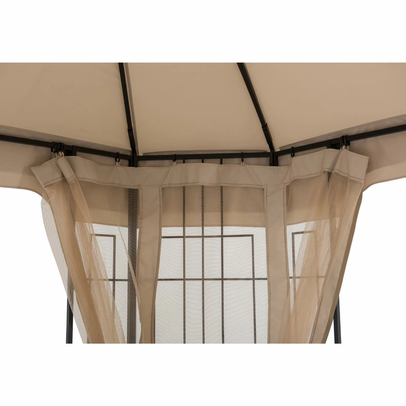 Shade your patio arrangement with the Sunjoy 11 x 13 ft. Steel Octagon Soft Top Gazebo. This gazebo is supported by a powder-coated steel frame. A beige polyester canopy in own provides coverage front the sun. The two-tier roof provides comfortable airflow while the mosquito netting curtains offer additional shade and keeps the bugs out.