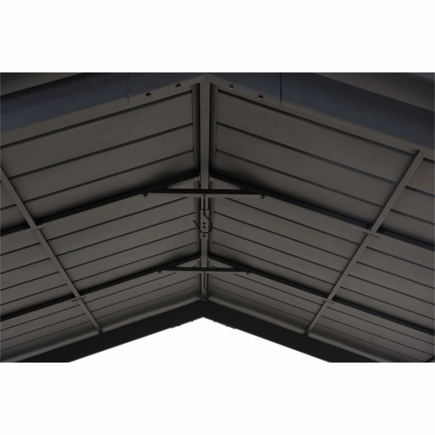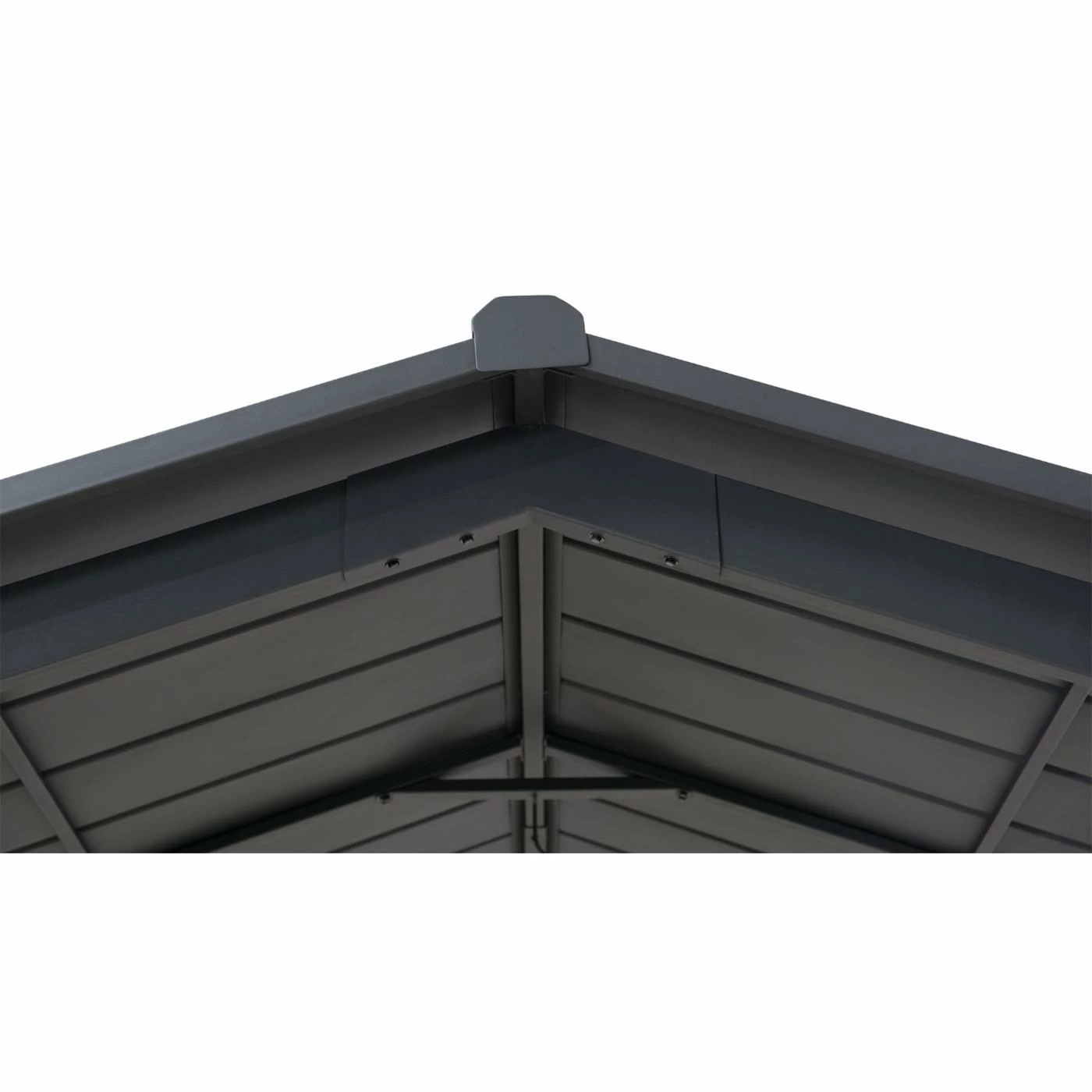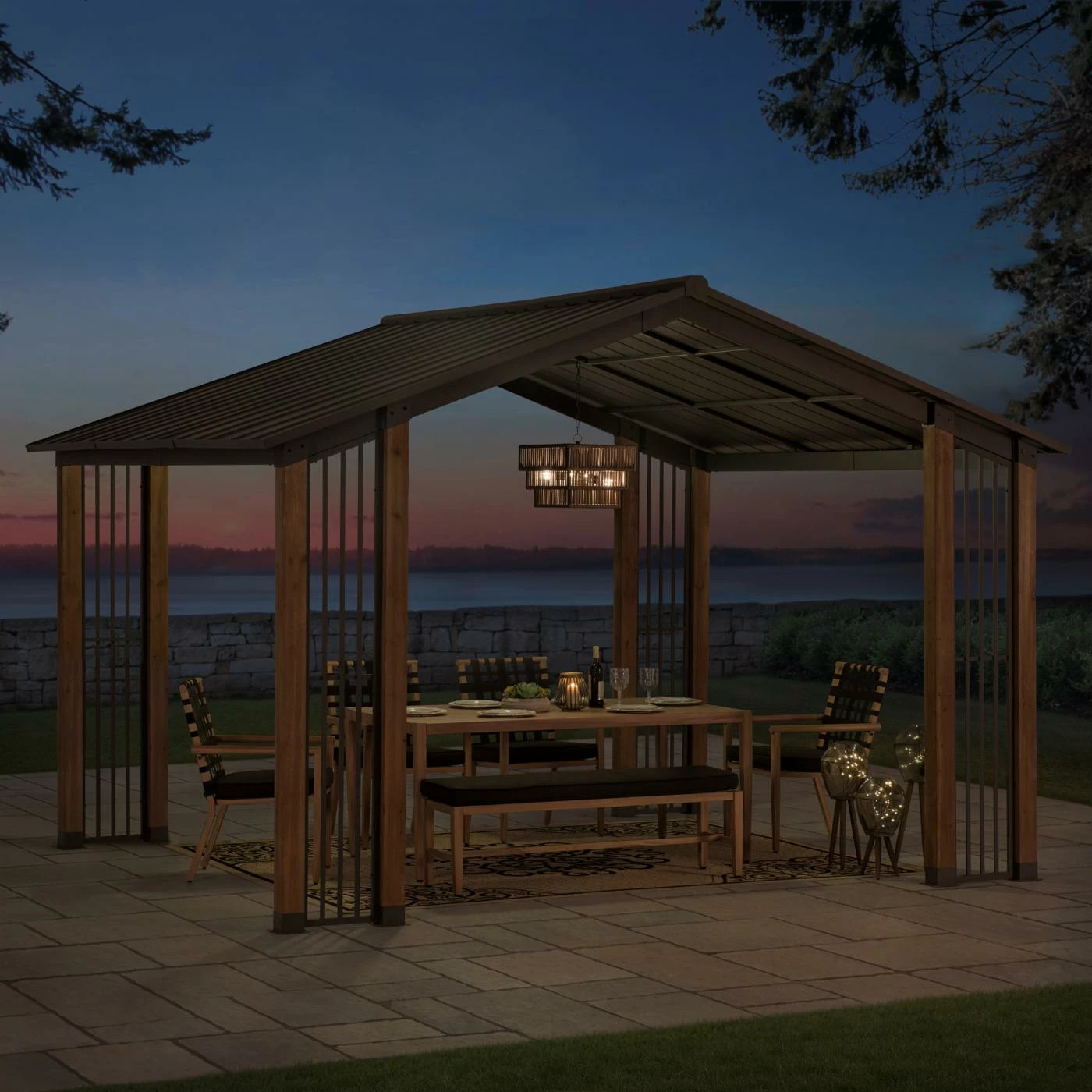 Expand your home and create an outdoor gathering spot for family and friends. This 11 ft. x 13 ft. hard-top gazebo by the worldโs leading ready-to-assemble outdoor structure maker, Sunjoy, creates a perfect outdoor setting for any time of the year. Keep cool in the shade under the durable steel roof and frame supported by a natural Cedar wood frame posts. Set the mood by suspending a chandelier from the incorporated ceiling hook for functional light and high design. With straight-forward, easy-to-follow assembly instructions youโll be relaxing with your beverage of choice in your favorite new outdoor living space for years to come.