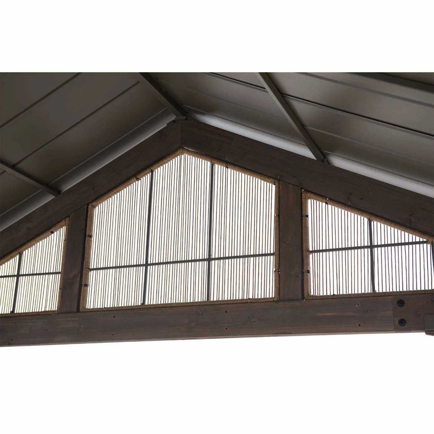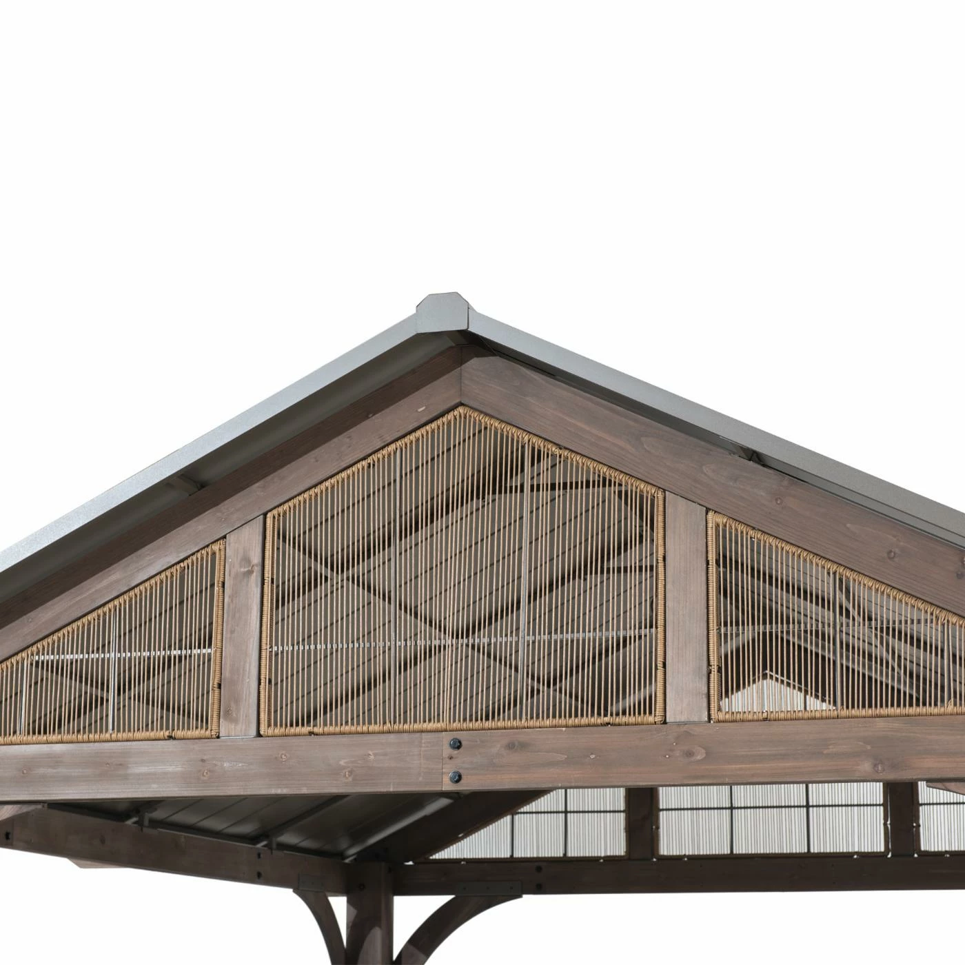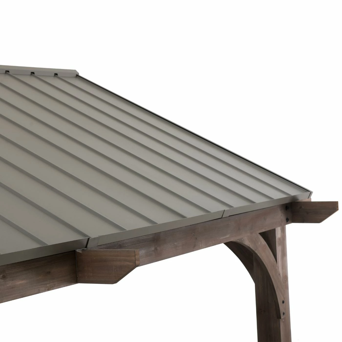 Instantly create an outdoor gathering spot for family and friends away from the glaring sun and pesky insects. This 12 ft. x 14 ft. hard-top gazebo by the world’s leading ready-to-assemble outdoor structure maker, Sunjoy, creates a perfect outdoor setting for any time of the year. Keep cool in the shade under the powder-coated steel roof supported by a natural Cedar frame and all-weather wicker gable accents. With straight-forward, easy-to-follow assembly instructions you’ll be relaxing in your favorite new outdoor living space in no time.